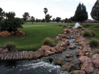 The Clubhouse at the Boulder Creek is a true oasis in the desert. It is home to a well-stocked Golf Shop; the Creekside Restaurant that's open for breakfast, lunch and dinner; a full bar; and a full service coffee shop. The Golf Shop supports a computer-driven handicap service and the men's and women's locker rooms. The full banquet facility at the Boulder Creek Golf Club is available to host tournaments, corporate outings, banquets and weddings. The area media has certainly sat up and taken notice. Las Vegas Magazine has voted it the “Best New Golf Course in Las Vegas” in 2003 and “Best Bargain Golf Course”.